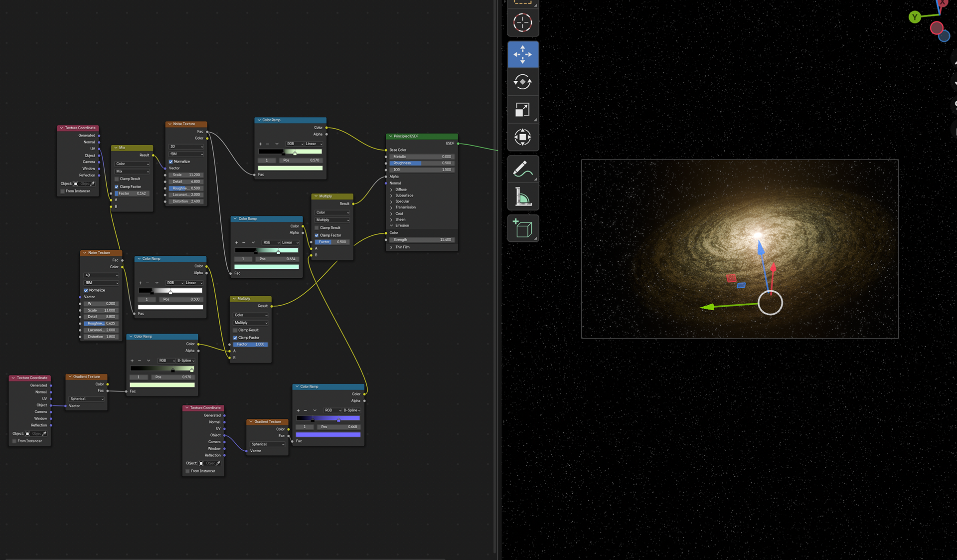 This is a 3D model made in Blender by using extensive material and light node editing. I've always enjoyed galaxies and found their properties to be very aesthetically pleasing, so I chose to practice lighting and rendering using them. I also used this as an opportunity to practice particle systems and noise control.